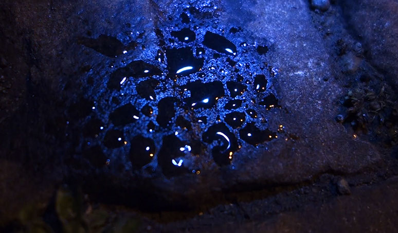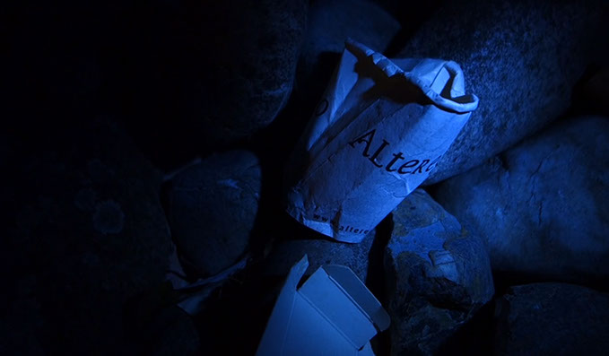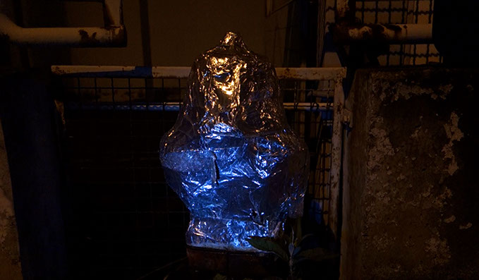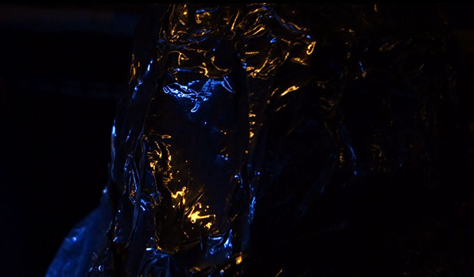 Embodying the wanderings of a solitary thought, a halo of light walks in an area and inspects the outline, revealing hidden objects in the dark. Fantastic shapes emerge and metamorphose as elusive mirages. The place seems haunted by strange and disquiet creatures who have no name. The voice of the invisible wandering hermit comes to us through a monologue as a song. A form of trance that seeks to define what constantly escapes, trying to communicate with these animated artifacts.