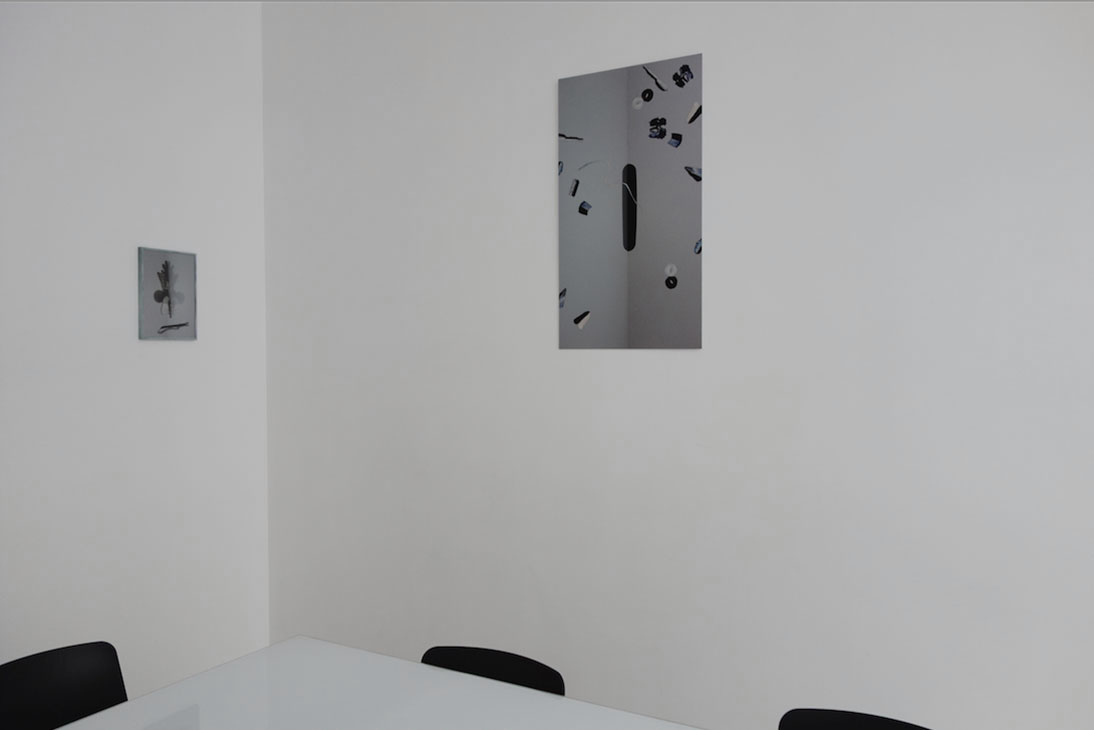 Cheminant avec le temps, la lumière traverse les zones et use les matières. « Tout brûle sous le soleil » est un rayon du passé qui rejoue et abîme la scène de l’usure. Dans une salle de réunion achronique et aseptisée, on a convoqué les restes d’une investigation urbaine pour les faire parler. Exposés sur une table réfléchissante, ces objets brûlés témoignent d’un passage sous les feux, naturels ou artificiels. Mais c’est par le truchement de la vidéo qu’éclate le prisme de la lumière : ils étaient reflétés et objets de réflexion, ils deviennent les produits d’une lumière dédoublée, fossiles diffusés sur écran LED dans une vidéo aux allures de publicité, croisée aux recherches philosophiques. Désormais, d’où vient la lumière ? De quel temps, de quelle dimension rapporte-t-elle ces objets ? Et où sont passés ces commerciaux en cravate ?
